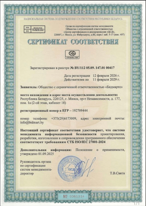 Мы ежегодно подтверждаем соответствие требованиям в рамках законодательства.